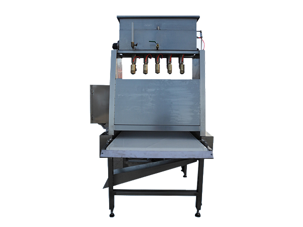 二、功能說明  1、噴糖量可自由調節(jié)。  2、可實現(xiàn)餅干表面噴糖?! ?、輸送帶采用無級調速,滿足各類規(guī)格型號的配套?! ∪⑻厣 ?、糖斗水加熱具有自動調節(jié)和恒溫控制機構,使糖斗中的糖不會結晶?! ?、噴出的糖像雪花一樣,增加人們購買餅干欲 望。